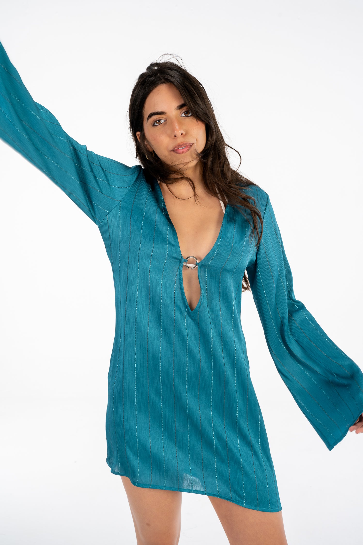 Light-catching and effortlessly elegant, The Sapphire shore dress is a striped blue cover-up dress designed to flow with the summer breeze. Crafted for beachside ease, its shimmery finish gives a subtle glow under the sun, while the airy silhouette makes it perfect to slip on over your swimsuit. Simple, refined, and made to move with you, from morning dips to sunset lounging.
