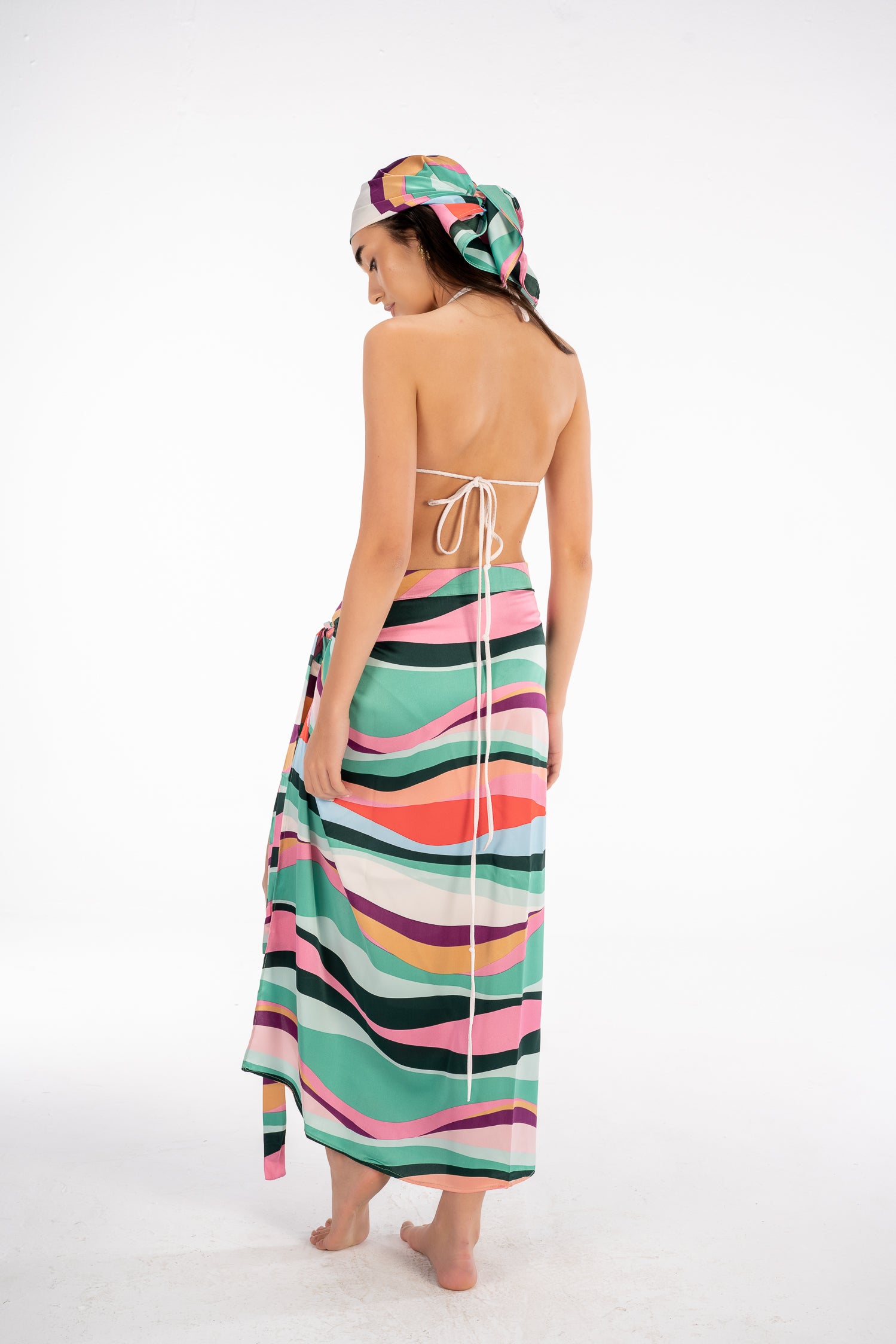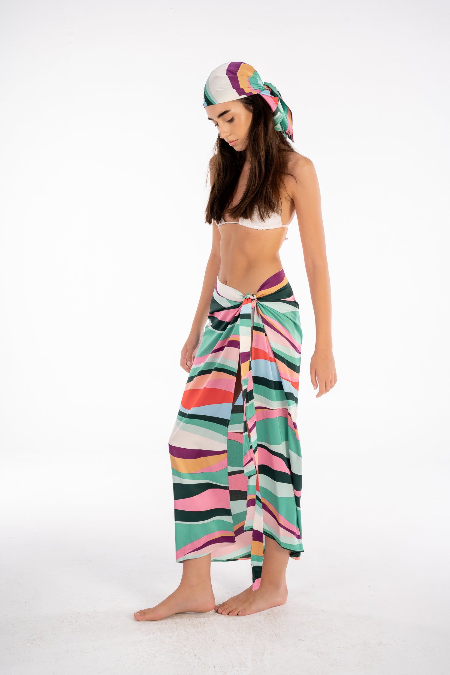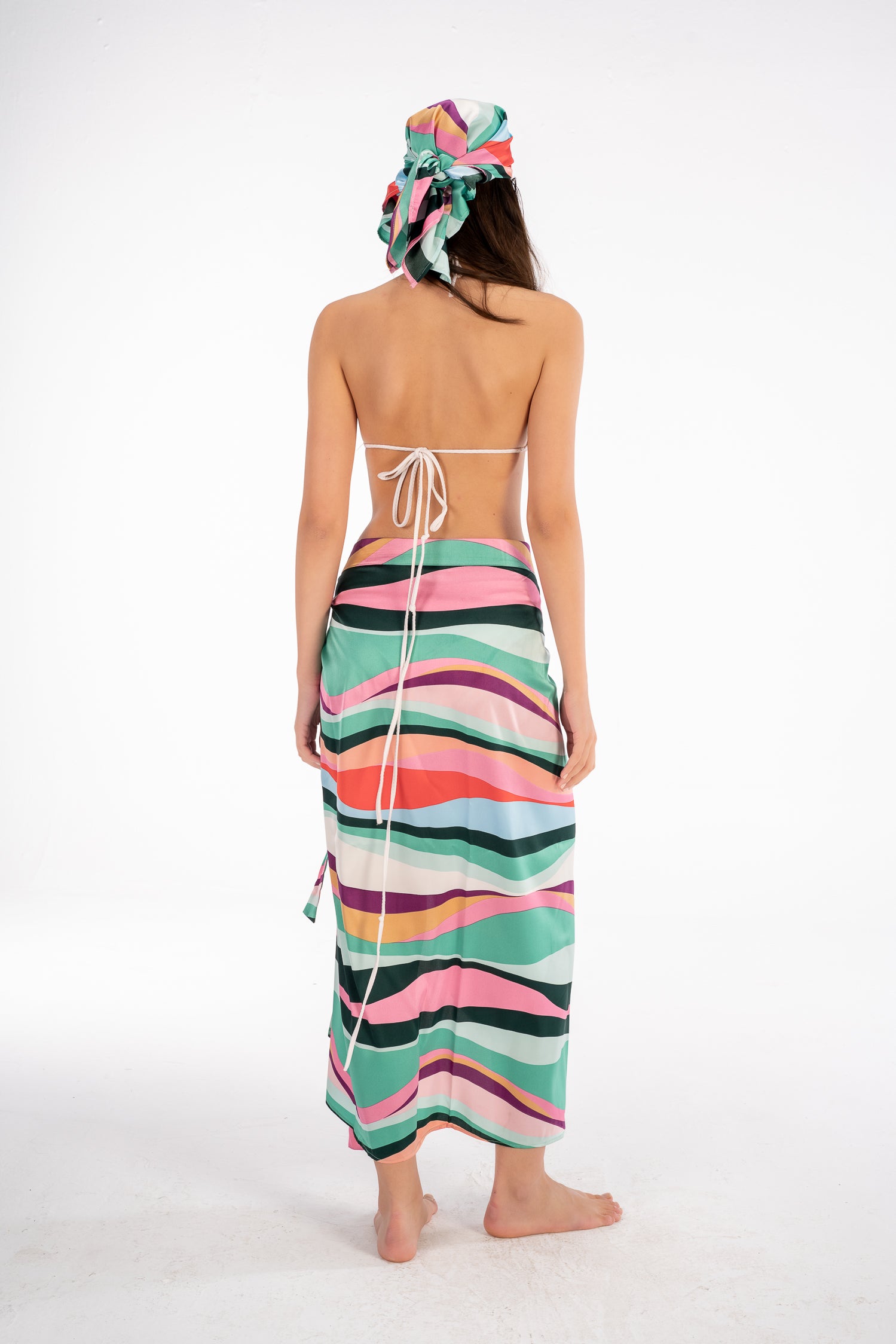 A timeless beach essential, The Mirage Wrap is a luxurious silk cover-up designed to be wrapped and styled your way. Lightweight, soft, and effortlessly elegant, it comes with a matching headscarf for a complete, polished look. Whether you’re lounging seaside or heading to a beachside lunch, this set adds a touch of grace to any summer moment